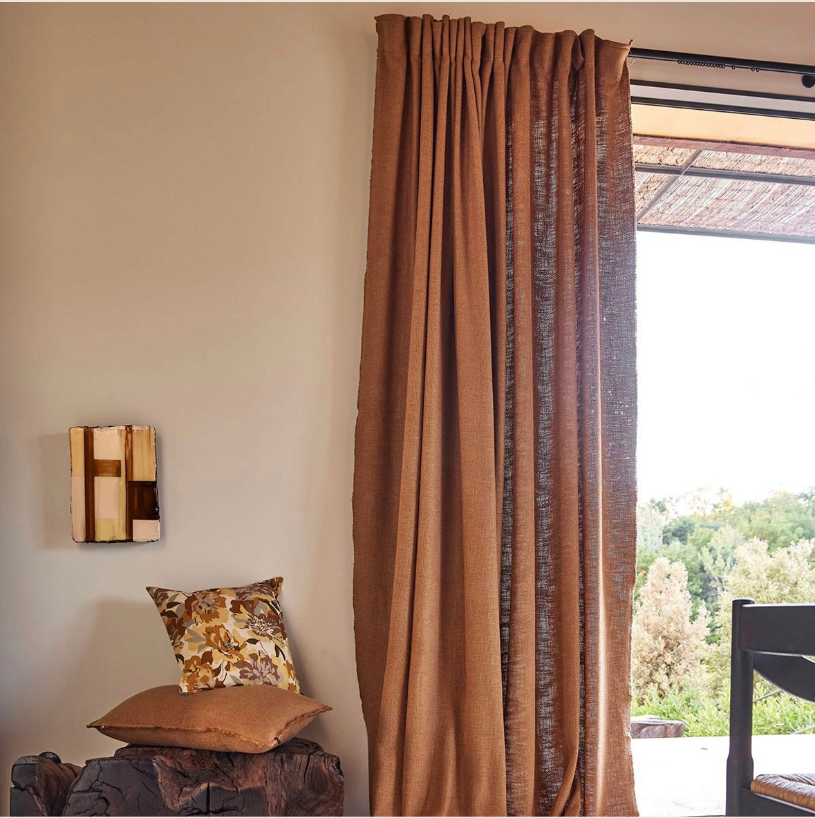 Le rideau California de Haomy est l'accessoire qu'il vous faut pour habiller vos fenêtres avec un style à la fois naturel et sophistiqué. Son aspect texturé et sa palette de couleurs riches apportent une touche de caractère à votre intérieur, tout en filtrant délicatement la lumière.
