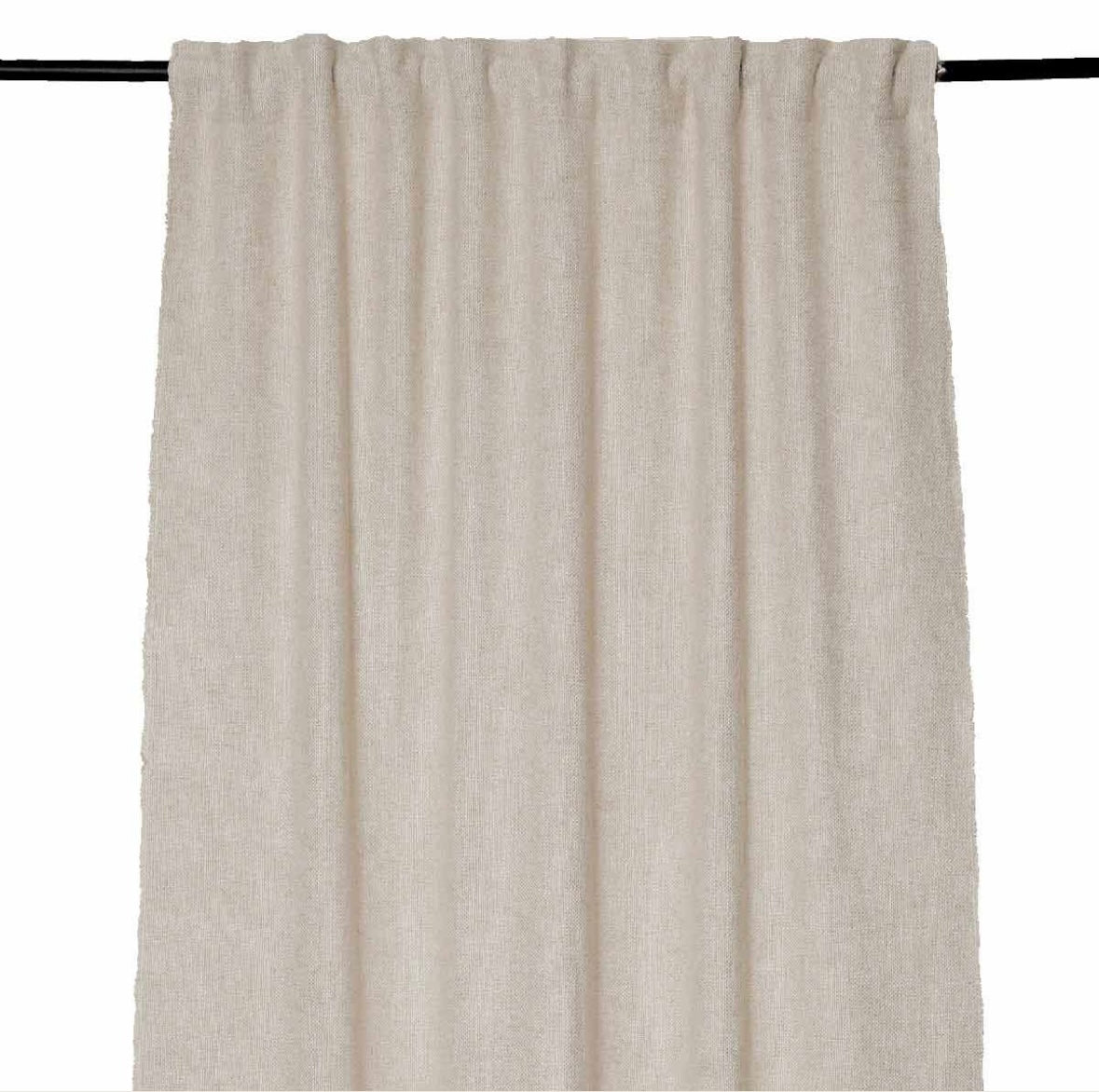 Confectionné à partir d'un mélange de fibres, ce rideau offre un tombé élégant et une grande résistance. Son design uni met en valeur le travail de la matière, tandis que son double système d'attache le rend particulièrement polyvalent.
